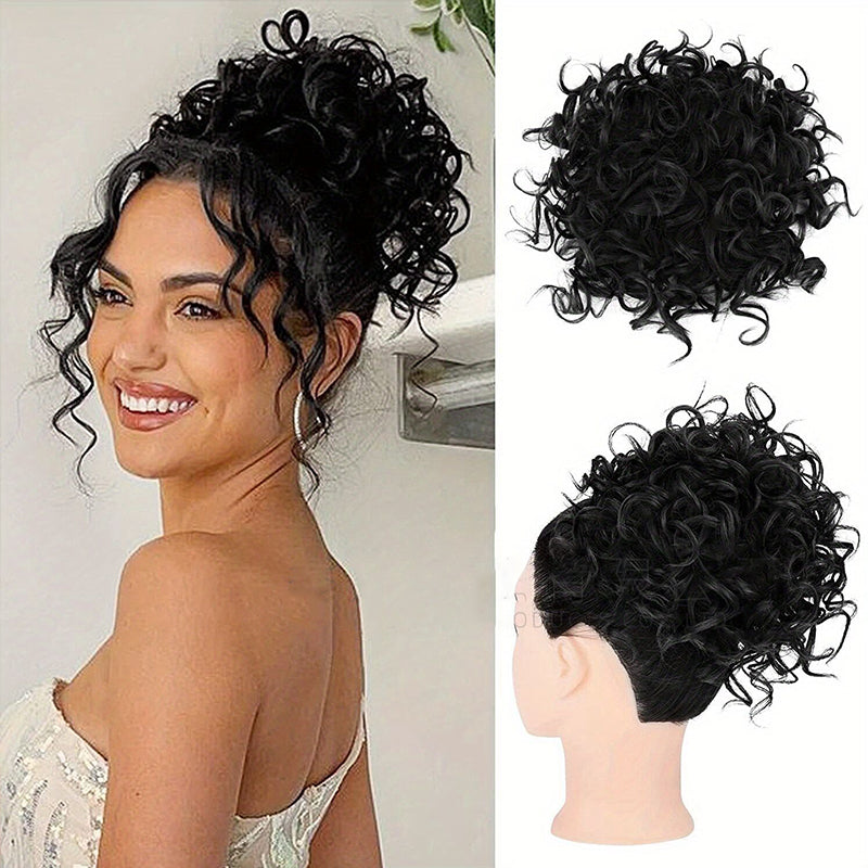 1 * Elastic Drawstring Loose Short Curly Bun