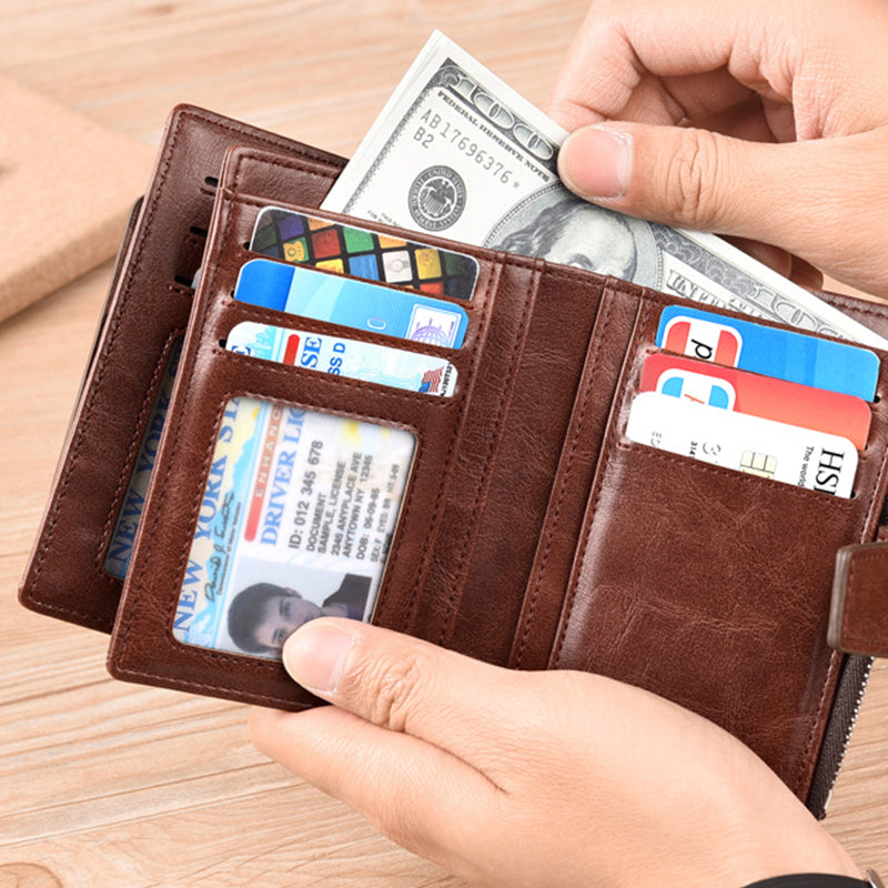 Retro Fashion, Compact and Convenient: Multiple card slots, large capacity, anti-theft, built-in NFC blocking conductive lining, shielding NFC/RFID scanning