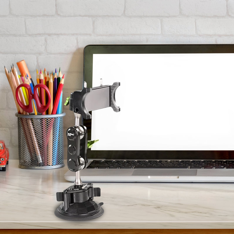 ADJUSTABLE VIEWING:The telescopic arm extends from 5 – 9.8 inches and pivots on 360 degree arc for a variety of mounting positions. The rotating ball joint allows you to view your phone in both landscape and portrait mode.