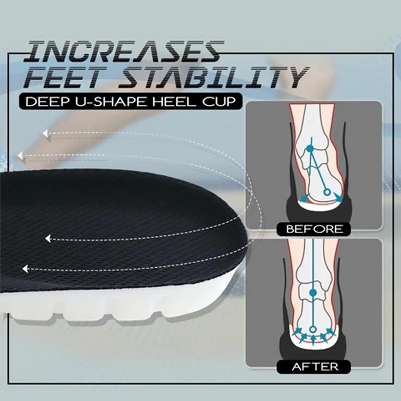 Deep U-Shape Heel Cup: It increases feet stability and gives a moderate control and support to the feet unlike regular shoe insoles. It can help preventing ankle injuries during maximum foot movements.