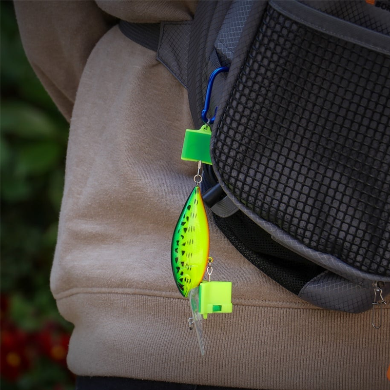 CONNECTING RING & ANTI-SKID DESIGN: The connecting ring design ensure the fishing hook bonnet can be easily hung anywhere. Make it easier to carry. The strip-shaped anti-skid design around the snap prevents the protective cover from slipping off easily when picked up.
