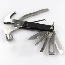 - Multi-function, axe, hammer, pliers, Phillips head screwdriver, saw, broach, slotted screwdriver, wrench, wire cutter, plug connector, bottle opener, tool with safety lock.