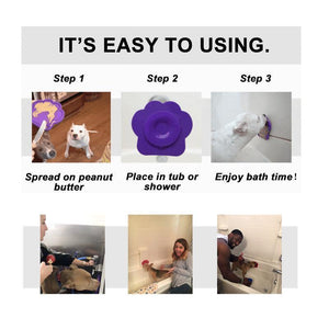 - SIMPLE TO USE: Just spread peanut butter (or any spreadable dog snack) onto Bath Buddy, then stick Bath Buddy to your tub or shower wall. Your pup gets to enjoy a tasty snack while he or she gets a bath.
