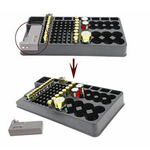- Easy Storage- Place your battery organizer in a cabinet, closet or drawer or mount it to the wall using the included mounting hardware. Features swivel and slightly angular storage rows for easy removal of batteries whether stored in the drawer or on a wall.