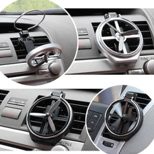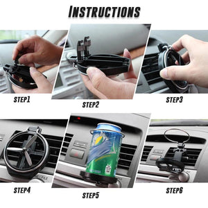 This is a universal and foldable car drink holder. the rear side of the cup holder is fixed to the air outlet of the car's air conditioner via two connecting rods inserted into the socket.