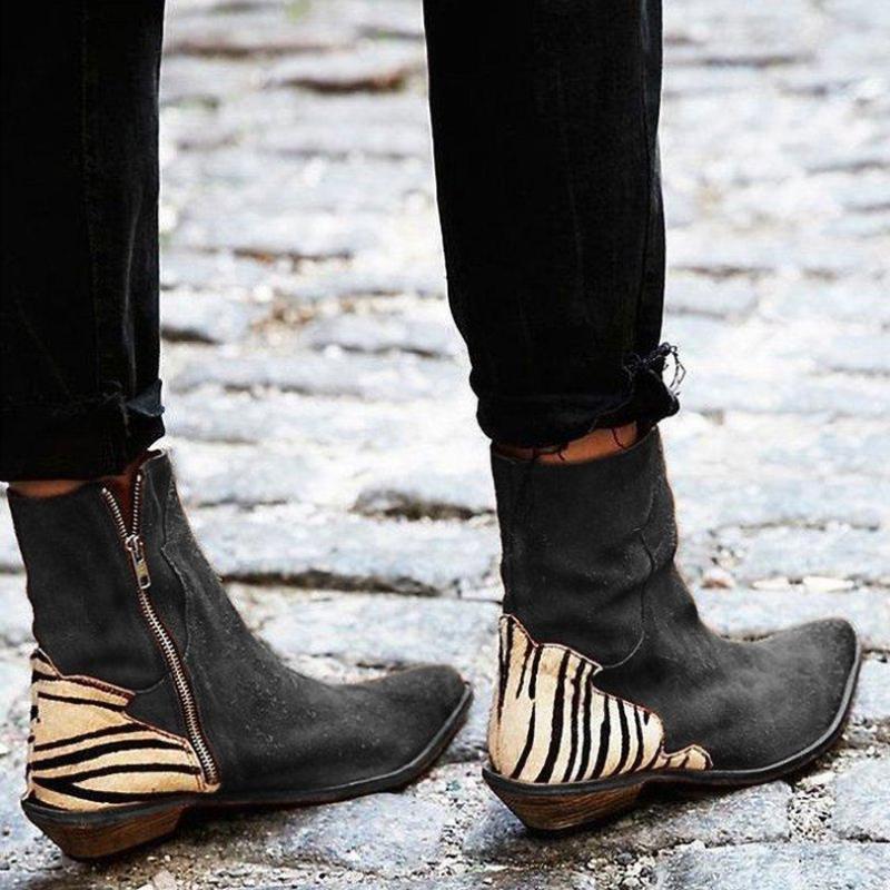- 1*pair of Casual Pointed Toe Zebra-Striped Boots