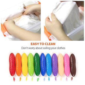 Now, young toddlers can now express their creativity by coloring yet without creating a mess in your home! Itâs washable! Easily washed from clothing and most surfaces with just damp of sponge and water! They wonât stain kidsâ hands and are hard to break, absolutely a cost-effective option than traditional crayons. Its ergonomic shape is suitable for easy grab by little hands! Let your children experience smoother, easier laydown, making the coloring experience that is much more enjoyable!