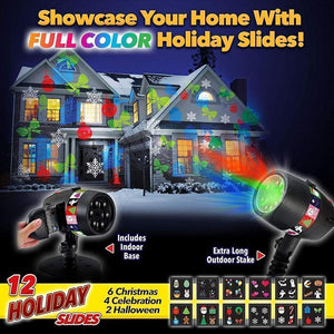 - Easy To Use: simply plug it in, insert slide and watch you home come to life. The super-efficient motor couple with bright LED lights allows the holiday images to dance over your home. Customize your slideshow using one of three speeds: slow, fast or freeze setting.