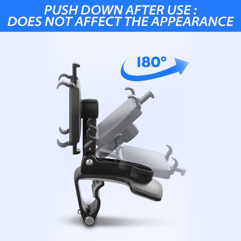 This phone holder features a strong, anti-slip clip to securely attach your device to the dashboard, sun visor, or even front mirror.