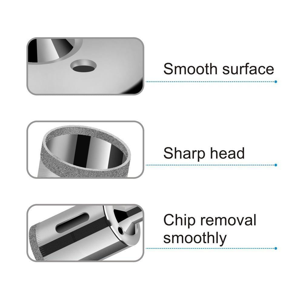 Easy, quick and smooth drill for hole; enhance the drilling speed to ensure a sharp, high precision and smooth cut without a broken edges in seconds;
