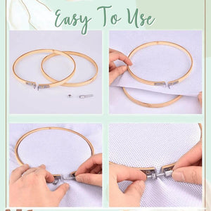 The embroidery hoops have a brass adjustment screw that you can tighten when necessary to keep the fabric as tight as a drum