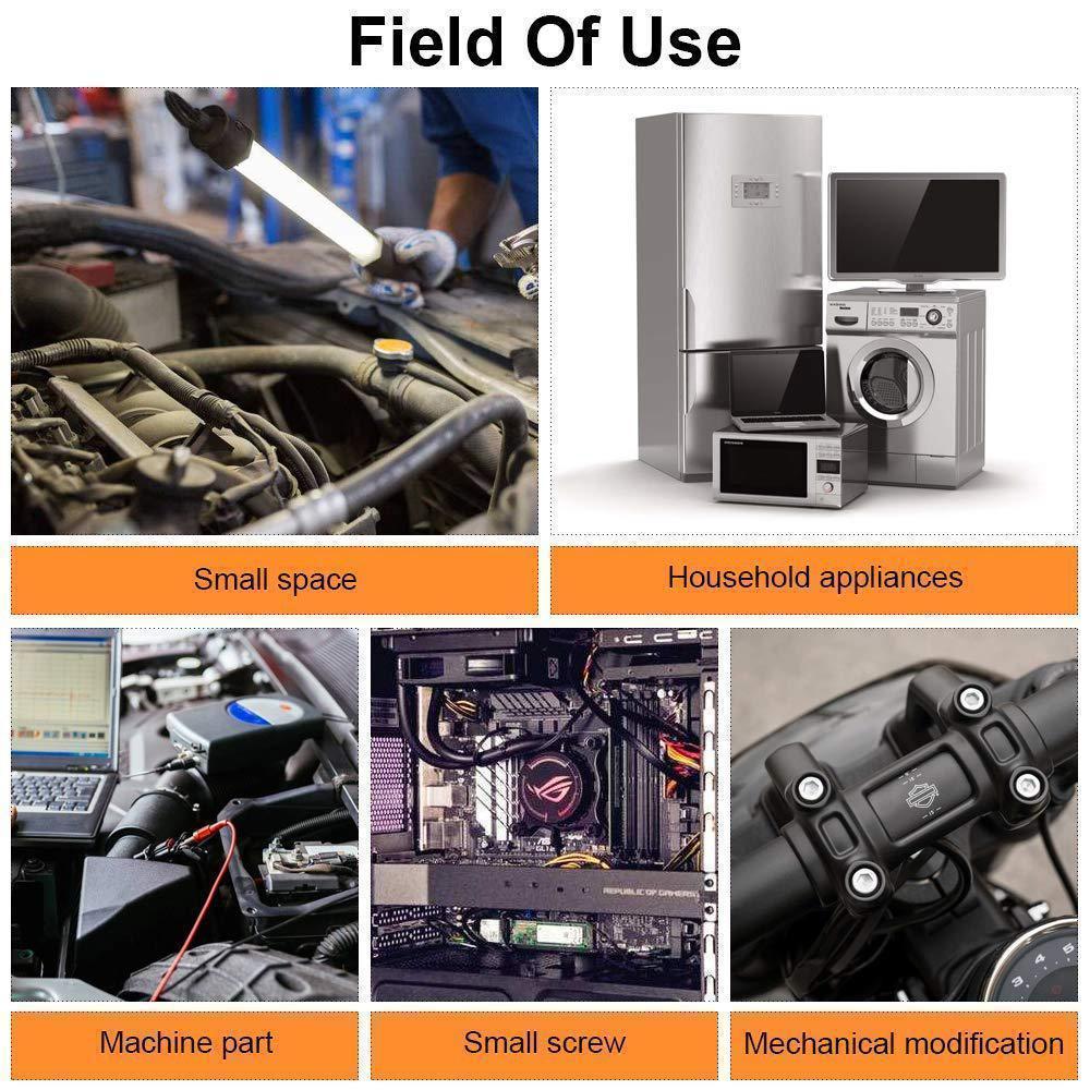 • 【FURTHER FIELD OF APPLICATION】 Flexible drill extension is an important tool in maintenance and repair, including computer cases, furniture, electrical appliances, etc.