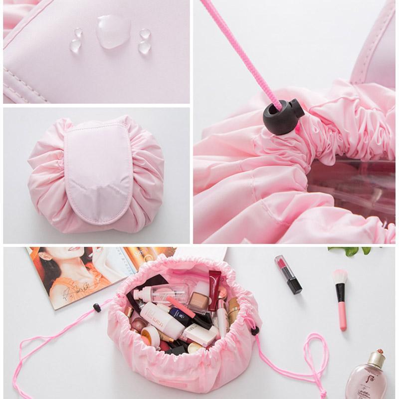 PACK UP INSTANTLY - Packing up all your products is no longer a chore. Just place everything on the open makeup bag, and pull the strings to close. It really is that simple.
