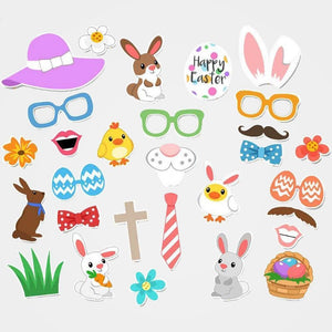 - 🐣🐣29 PCS Colorful Photo Booth Props , Attached To The Sticks, you can DIY any style you like. You will be able to take pictures with rabbits and Easter eggs 2019 New Design!!!Share these props to families, colleagues, classmates, when Easter, you have enough memories of surprises for Easter !