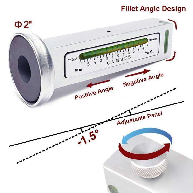 The Magnetic Alignment Camber Gauge measures the Camber and Caster angle on the wheel hub or brake disc. It allows adjustment to maintain correct wheel alignment and prevent your tire from getting untimely worn out.. Its a useful tool to maintain the correct Camber settings after dismantling and re-assembling the suspension.
