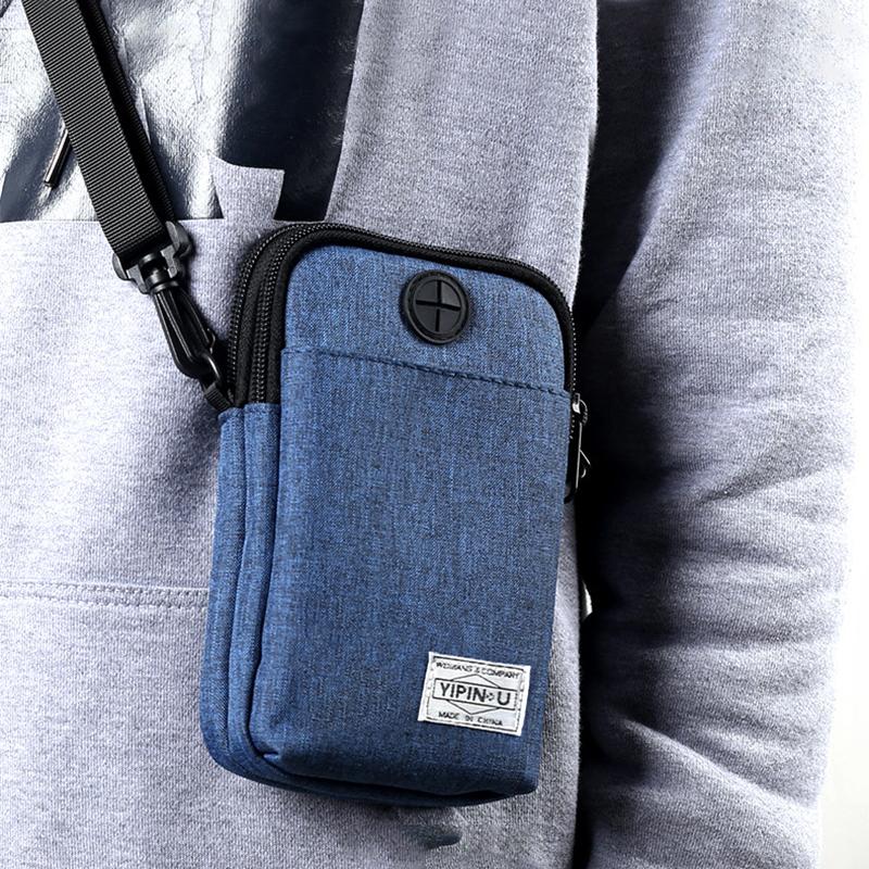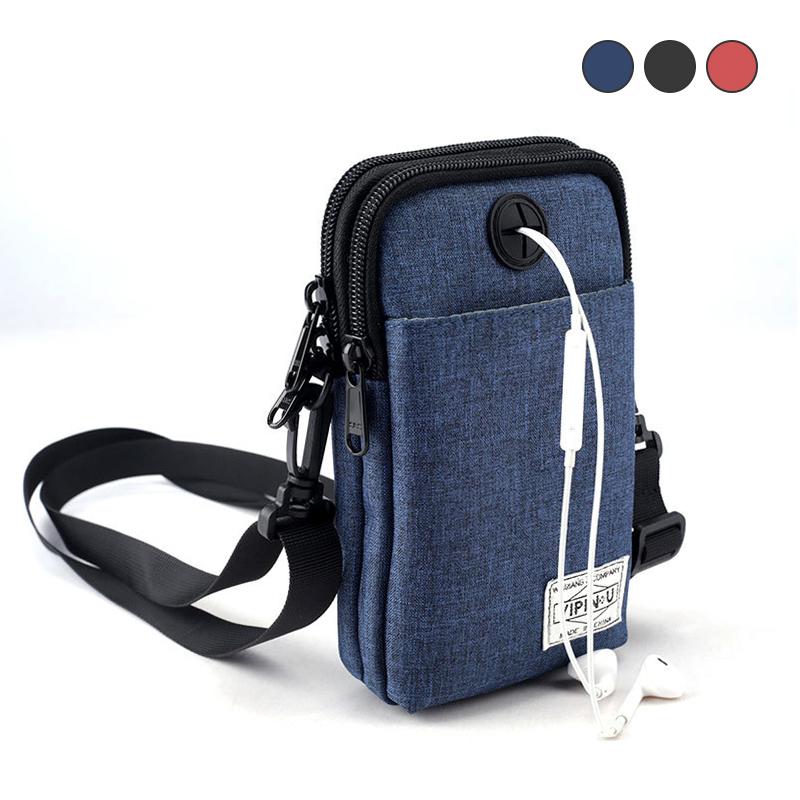- MULTI-POCKET DESIGN STRUCTURE: Consist of 3 compartments; 1 x Front slim pocket for your keys, cards, cash and change etc. 2 x Zippered compartments with enough space for up to 2 Smartphones, or a sunglasses, a small wallet, card case, a power bank and more.