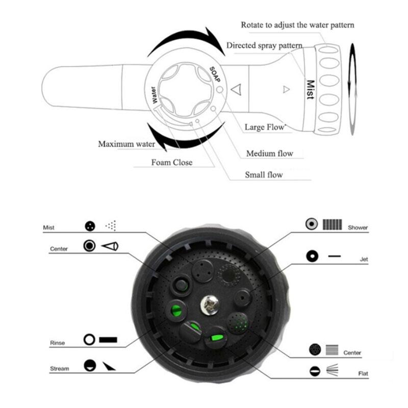 Tackle all your watering jobs with this spray nozzle. With eight watering patterns and adjustable flow control that allows you to customize your water output for every task, it’s the must-have for modern cleaning and plant/grass maintenance.