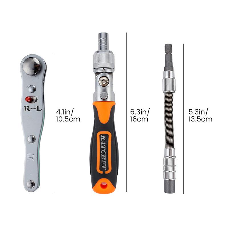 - Aluminum alloy ratchet handle, free choice of twist direction, high hardness, wear resistance, anti-skid and anti-rolling.