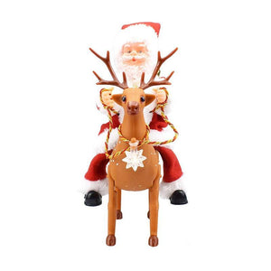 - Santa Claus rides on top of the moving reindeer, christmas music plays at the same time