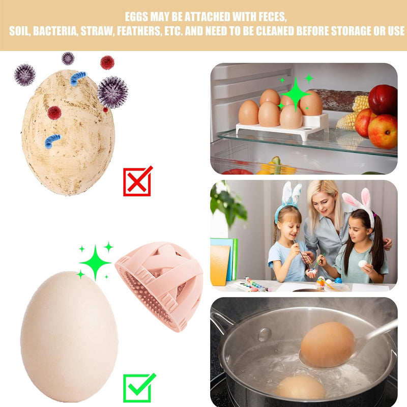 【Safe and Reliable to Use】Our egg washer is made of food-grade silicone, and is a premium material to use. Our silicone egg brush has strong cleaning ability and flexibility, Perfect for cleaning egg, fruits and vegetables. The egg shells you purchase may have stains, using our egg brush ensures thorough cleaning before cooking, thereby reducing the risk of food contamination.