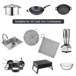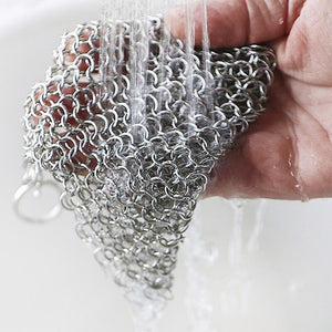 Our cast iron cleaner is designed with durable chainmail. If you are distressed by the normal scouring pads which need to be replaced regularly, then you don’t have to worry about the cast iron cleaner. The durable, soft and smooth chainmail will be a good choice for kinds of cast iron cookware and glassware. 🔗 🔗