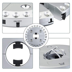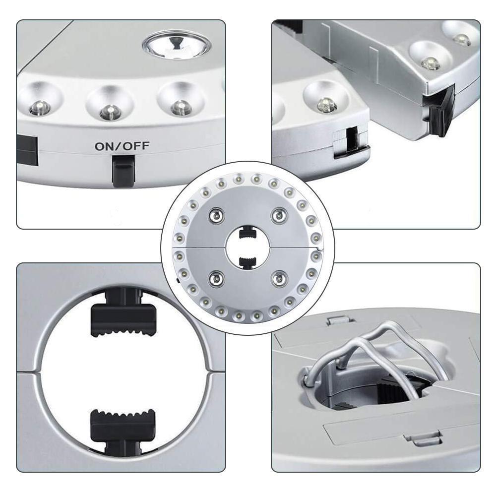 How many times have you found yourself sitting next to the patio table on a hot day, reading your favorite book, only to call it a night when the sun goes down? Or, trying to enjoy a romantic dinner in your backyard, but with nothing aside from the moonlight for illumination and you could barely see your food? Suffer no more darkness with this Patio LED Umbrella Light! Easily clamp it onto your patio umbrella and let it light up your surroundings brightly! Continue to enjoy a meal, play cards, or hang out with your friends late into the night!