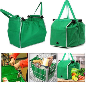 - The bag clips onto the side of your shopping cart, so you can add items quickly and easily.Â