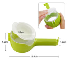 aren't there enough containers for your open food? With These clamps you don't have to sealed the food into one Container Transfer. It has a clamp, a lid and a nozzle, with which you can easily distribute the food and then seal it.