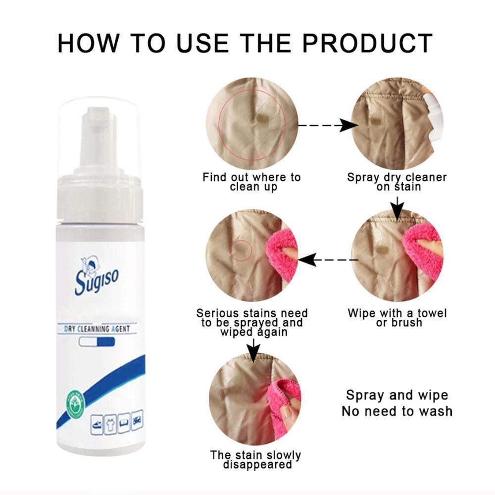 - LARGE BULK SIZE: Waterless Clothing Cleansing Foam liquid formula comes in a 150ml bottle. You can spray for spot treatments or run it in a hot water cycle to clean your washing machine. Some washing machines even come with drum cleaning cycles that our formula can be used in!
