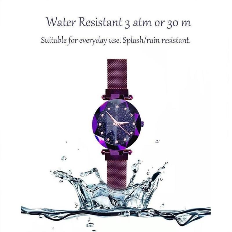 ⌚💎 This elegant quartz watch has a classic look with a metal case and a metal bracelet. The special starry sky design attracts a lot of attention.