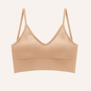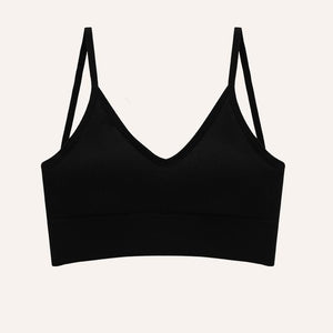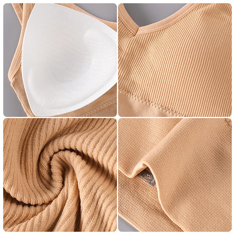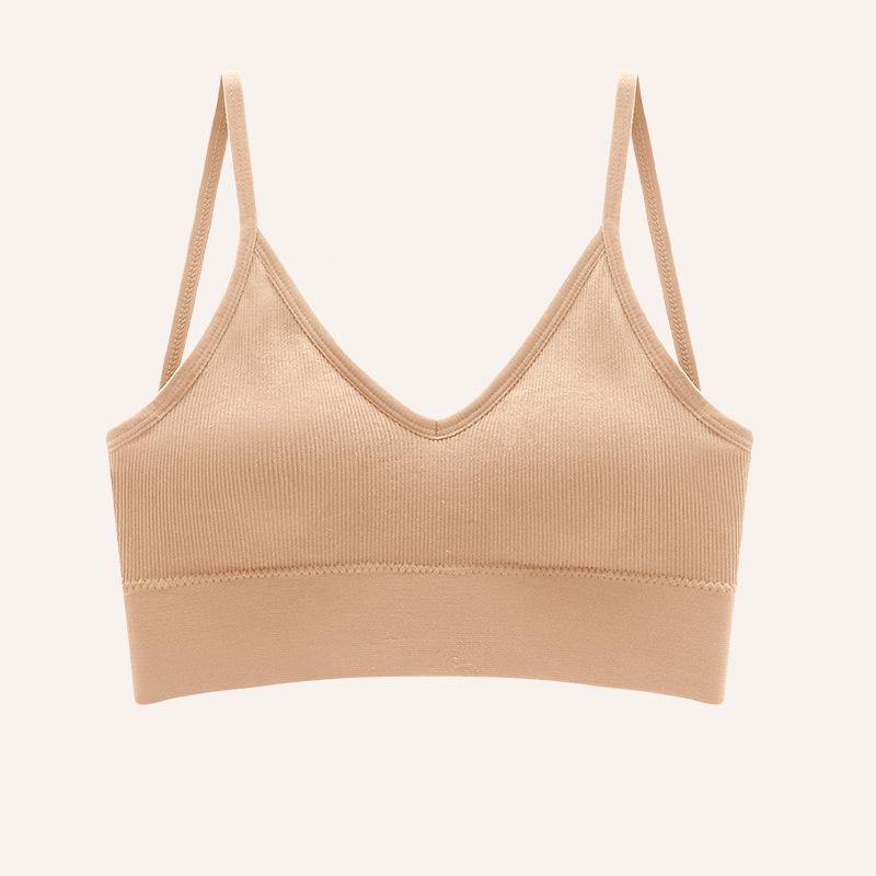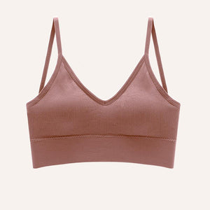 Removable soft cup pads with a material like cotton for improving coverage and keeping shape; Bra without underwire and seamless design to minimize chafing, soft and comfortable to wear.