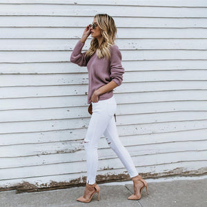 - 1*Women's Casual Cross Backless Long Batwing Sleeve Sweater